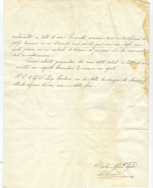 P. S. Il Sig. D. Luigi Iacobucci mi ha data la scarpa di Margherita,